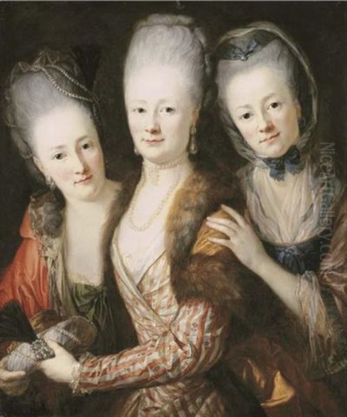 Group Portrait Of The Daughters Of Johann Julius Von Vieth Und Glossenau: Juliane Corline, Sophie Juliane Elisabeth And Juliane Charlotte, In Lace Lined Dresses