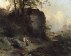 Landschaft Mit Gebirgsbach Und Figuraler Staffage