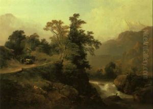 Mountainous River Landscape With Peasant Passing A Wayside Shrine