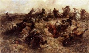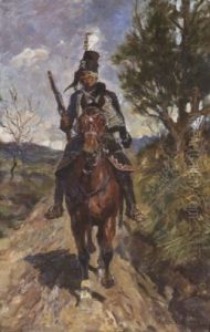 Militarreiter Mit Gezucktem Sabel Auf Einem Galoppierendem Schimmel