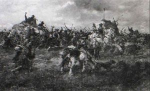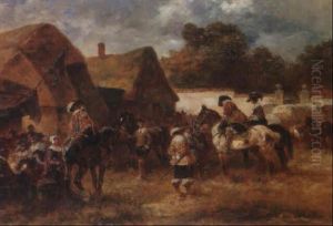 A Horseman Leading A Troup Of Armed Peasants Through A Forest During The Thirty Year War