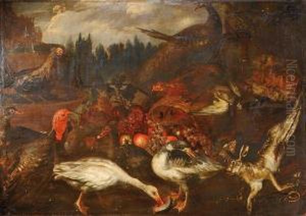 Nature Morte De Fruits Aux Oiseaux Et Lievre