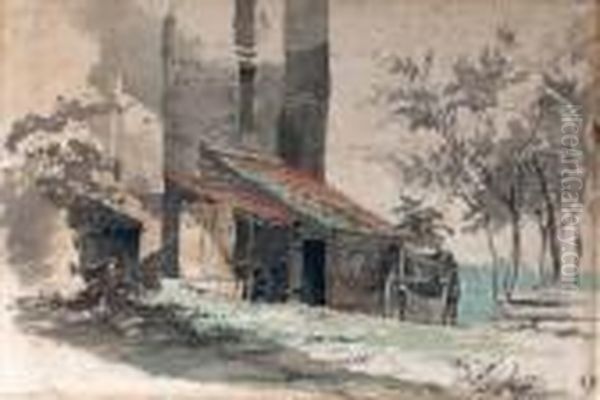 A Stable With Carts By The Ruins Of Castle Brederode