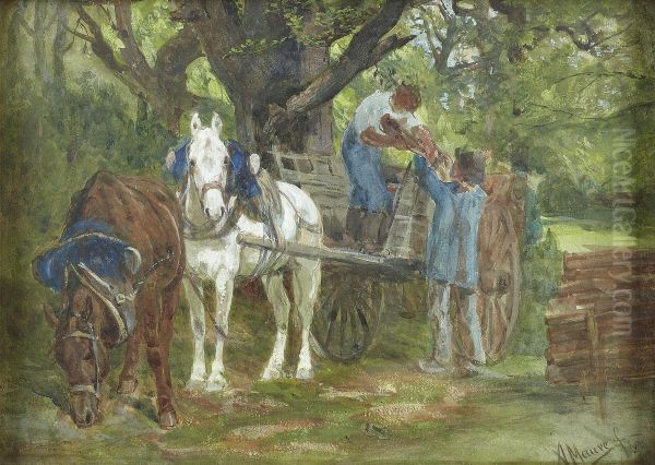 Bring the timeless beauty of Anton Mauve's Loading The Timber Wagon into your home with a handmade oil painting reproduction. Carefully recreated on canvas by skilled artists using traditional techniques, this piece captures the delicate brushwork, subtle light, and vibrant color of the original masterpiece. With museum-level quality and rich texture, it brings elegance and artistic depth to any space. Enjoy free shipping and make this masterpiece a part of your personal collection.