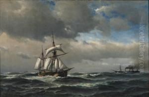 Marine With Sailing Ships Along The Coast On A Calm Day