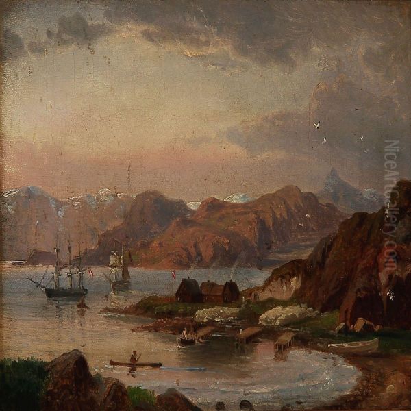Liner Off A Coast Near A Trading Station Or Settlement, Presumably In Greenland