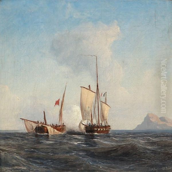 Two Sailing Ships Fighting Against Each Other