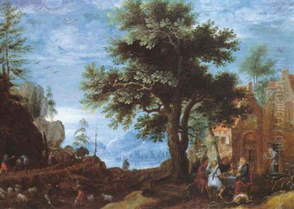 Paysage Avec Le Repas D'abraham Oil Painting by Anton Mirou
