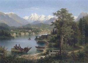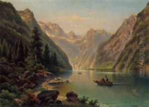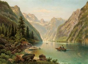 Seepartie Im Gebirge Mit Bauerin Auf Einem Heukahn
