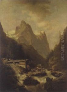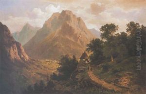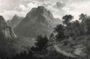 Gebirgslandschaft Mit Einer Kapelle Und Einem Dorf In Der Ebene