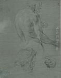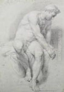 Etude De Nu Pour Un Dieu-fleuve Crayon Noir Et Rehauts De Craie Blanche Sur Papier Bleu