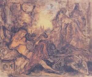 Selbstportrat Des Kunstlers Mit Seiner Frau Beim Picknick Im Romischen Theater In Frascati