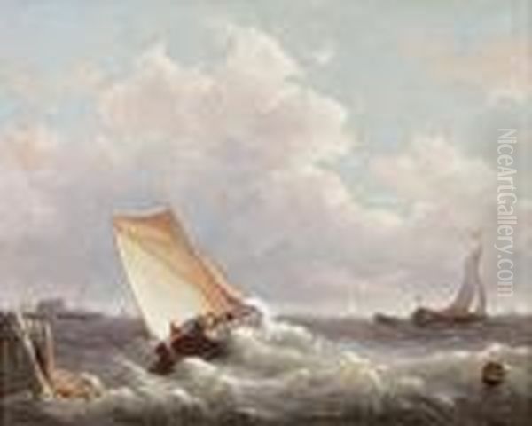 "voiliers Sur Une Mer Agitee". Huile Surtoile Signee En Bas A Gauche. 40 X 51 Cm