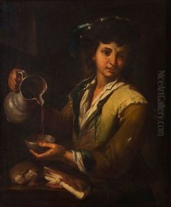 A Young Butcher, Standing In An Interior, Holding A Goat's Leg