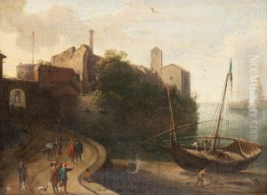 Paesaggio Con Porto E Personaggi Oil Painting by Antonio Cifrondi