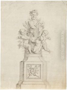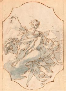 A Sibyl Seated Amongst Clouds, Surrounded By Putti