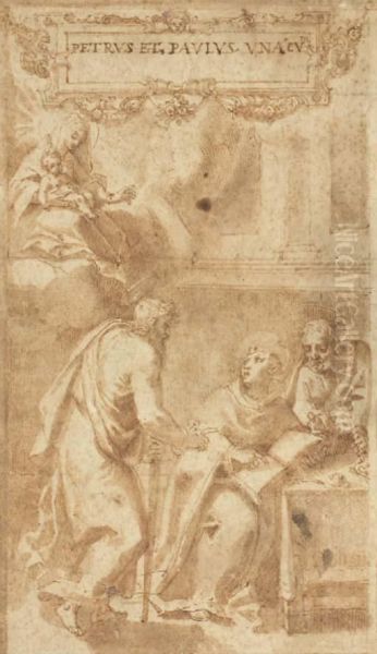 La Vierge A L'enfant Apparaissant A Saint Paul Et Saint Pierredictant La Regle A Saint Benoit
