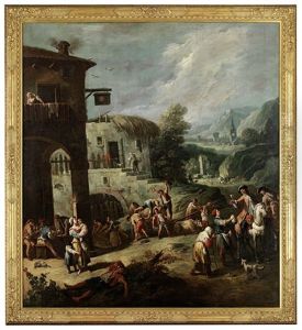 Scenes From The Story Of Bertoldino: A Pair Of Paintings