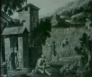 Paesaggio Agreste Con Due Contadine E Un Pastorello Alla Mungitura