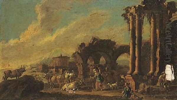 Shepherds and shepherdesses amongst classical ruins