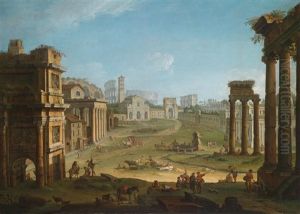 A Capriccio Landscape With Market Folk By The Palazzo De Senatore And Palazzo De Conservatori On The Capitoline Hill, Rome