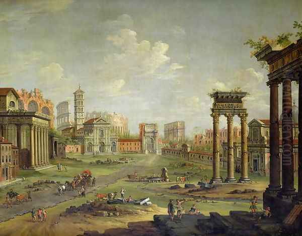 Bring the timeless beauty of Antonio Joli's The Campo Vaccino Rome Looking Towards St Francesca Romana and the Arch of Titus from the Temple of Saturn into your home with a handmade oil painting reproduction. Carefully recreated on canvas by skilled artists using traditional techniques, this piece captures the delicate brushwork, subtle light, and vibrant color of the original masterpiece. With museum-level quality and rich texture, it brings elegance and artistic depth to any space. Enjoy free shipping and make this masterpiece a part of your personal collection.