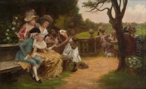 Parkszene Mit Zwei Eleganten Paaren In Kostumen Des 18. Jh.