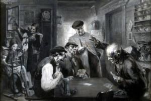 Caricature Of A Man Eating A Boiled Egg With Another Standing Behind