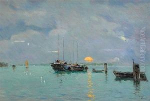 Barcas En El Squero Di San Trovaso, Con San Gervasio Y San Protasio Al Fondo