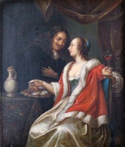 An Interior With Figures Seated Around A Table Listening To One Of Their Companions Reading A Letter