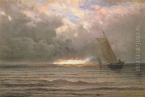 Pecheurs En Bord De Mer Au Coucher Du Soleil