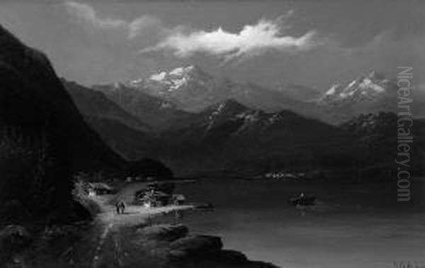 A. "gebirgssee". Sign. Ol Auf Lwd. Min. Rest. 67 X 105,5 Cm. Rahmen. Abbildung Seite