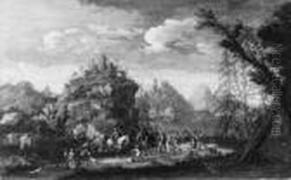 Ntonio , Umkreis Berglandschaft Mit Reicher Personenstaffage. Ol Auf Leinwand. H 45; B 72 Cm. Provenienz: Galerie Zinckgraf, Munchen