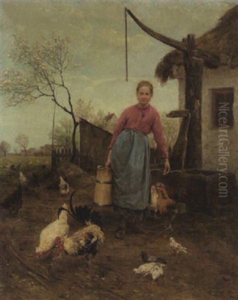 Bauernmadchen Am Ziehbrunnen