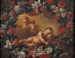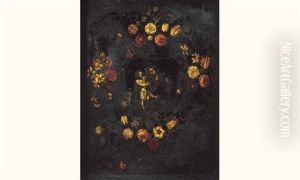La Vierge Adorant L'enfant Jesus Dans Une Guirlande De Roses