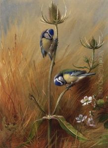 Bluetits On A Teasel