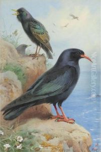 Dippers And A Grey Wagtail On The Bank Of A Stream