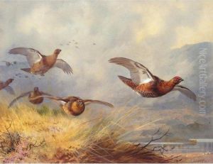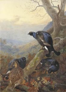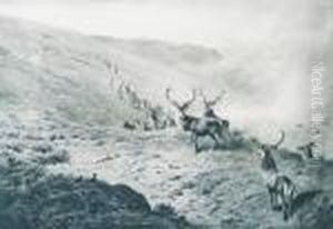 Deer Andgrouse Above A Glen