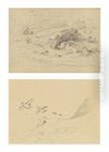 Study Of A Stag's Head; And Partridge In A Landscape