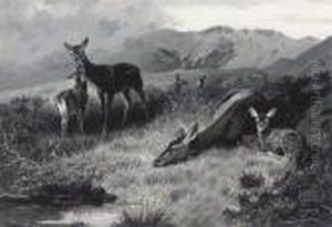 Hinds With Fawns At Rest