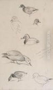 Studies Of Ducks, A Set Of Three Pencil Sketches Framed As One