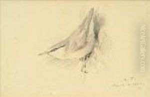 Studies Of Finches, A Set Of Three Pencil Sketches Framed As One