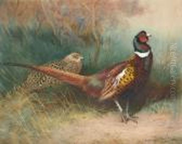 Bring the timeless beauty of Archibald Thorburn's A Cock And Hen Pheasant At The Edge Of A Copse into your home with a handmade oil painting reproduction. Carefully recreated on canvas by skilled artists using traditional techniques, this piece captures the delicate brushwork, subtle light, and vibrant color of the original masterpiece. With museum-level quality and rich texture, it brings elegance and artistic depth to any space. Enjoy free shipping and make this masterpiece a part of your personal collection.