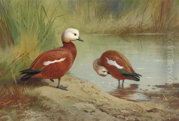 Bring the timeless beauty of Archibald Thorburn's A Pair Of Ruddy Shelduck On A Riverbank into your home with a handmade oil painting reproduction. Carefully recreated on canvas by skilled artists using traditional techniques, this piece captures the delicate brushwork, subtle light, and vibrant color of the original masterpiece. With museum-level quality and rich texture, it brings elegance and artistic depth to any space. Enjoy free shipping and make this masterpiece a part of your personal collection.