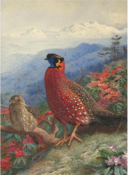 Bring the timeless beauty of Archibald Thorburn's A Pair Of Satyr Tragopans into your home with a handmade oil painting reproduction. Carefully recreated on canvas by skilled artists using traditional techniques, this piece captures the delicate brushwork, subtle light, and vibrant color of the original masterpiece. With museum-level quality and rich texture, it brings elegance and artistic depth to any space. Enjoy free shipping and make this masterpiece a part of your personal collection.