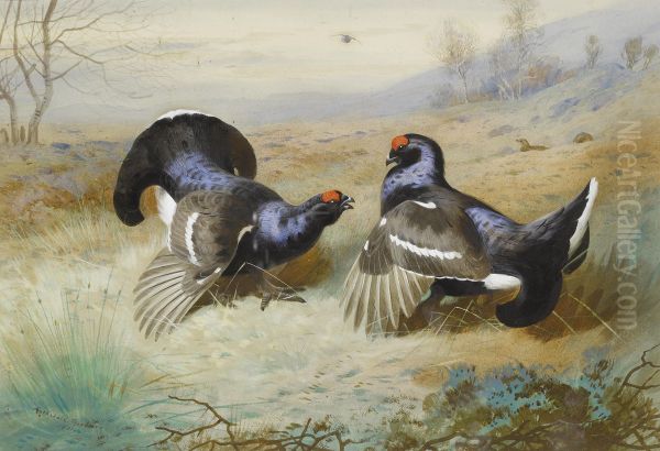 Bring the timeless beauty of Archibald Thorburn's Blackcocks At The Lek into your home with a handmade oil painting reproduction. Carefully recreated on canvas by skilled artists using traditional techniques, this piece captures the delicate brushwork, subtle light, and vibrant color of the original masterpiece. With museum-level quality and rich texture, it brings elegance and artistic depth to any space. Enjoy free shipping and make this masterpiece a part of your personal collection.