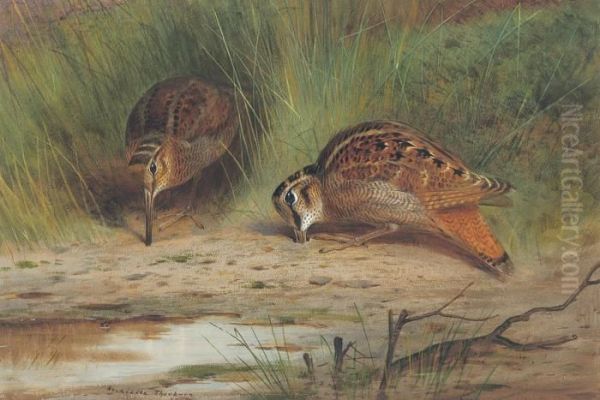 Bring the timeless beauty of Archibald Thorburn's Pair Of Woodcocks Feeding into your home with a handmade oil painting reproduction. Carefully recreated on canvas by skilled artists using traditional techniques, this piece captures the delicate brushwork, subtle light, and vibrant color of the original masterpiece. With museum-level quality and rich texture, it brings elegance and artistic depth to any space. Enjoy free shipping and make this masterpiece a part of your personal collection.