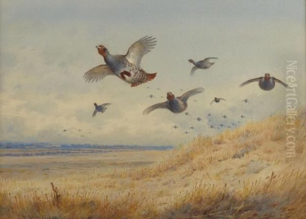 Bring the timeless beauty of Archibald Thorburn's Partridge In Flight into your home with a handmade oil painting reproduction. Carefully recreated on canvas by skilled artists using traditional techniques, this piece captures the delicate brushwork, subtle light, and vibrant color of the original masterpiece. With museum-level quality and rich texture, it brings elegance and artistic depth to any space. Enjoy free shipping and make this masterpiece a part of your personal collection.