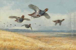 Bring the timeless beauty of Archibald Thorburn's Partridge In Flight into your home with a handmade oil painting reproduction. Carefully recreated on canvas by skilled artists using traditional techniques, this piece captures the delicate brushwork, subtle light, and vibrant color of the original masterpiece. With museum-level quality and rich texture, it brings elegance and artistic depth to any space. Enjoy free shipping and make this masterpiece a part of your personal collection.