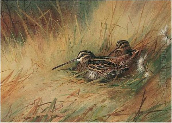Bring the timeless beauty of Archibald Thorburn's Snipe into your home with a handmade oil painting reproduction. Carefully recreated on canvas by skilled artists using traditional techniques, this piece captures the delicate brushwork, subtle light, and vibrant color of the original masterpiece. With museum-level quality and rich texture, it brings elegance and artistic depth to any space. Enjoy free shipping and make this masterpiece a part of your personal collection.